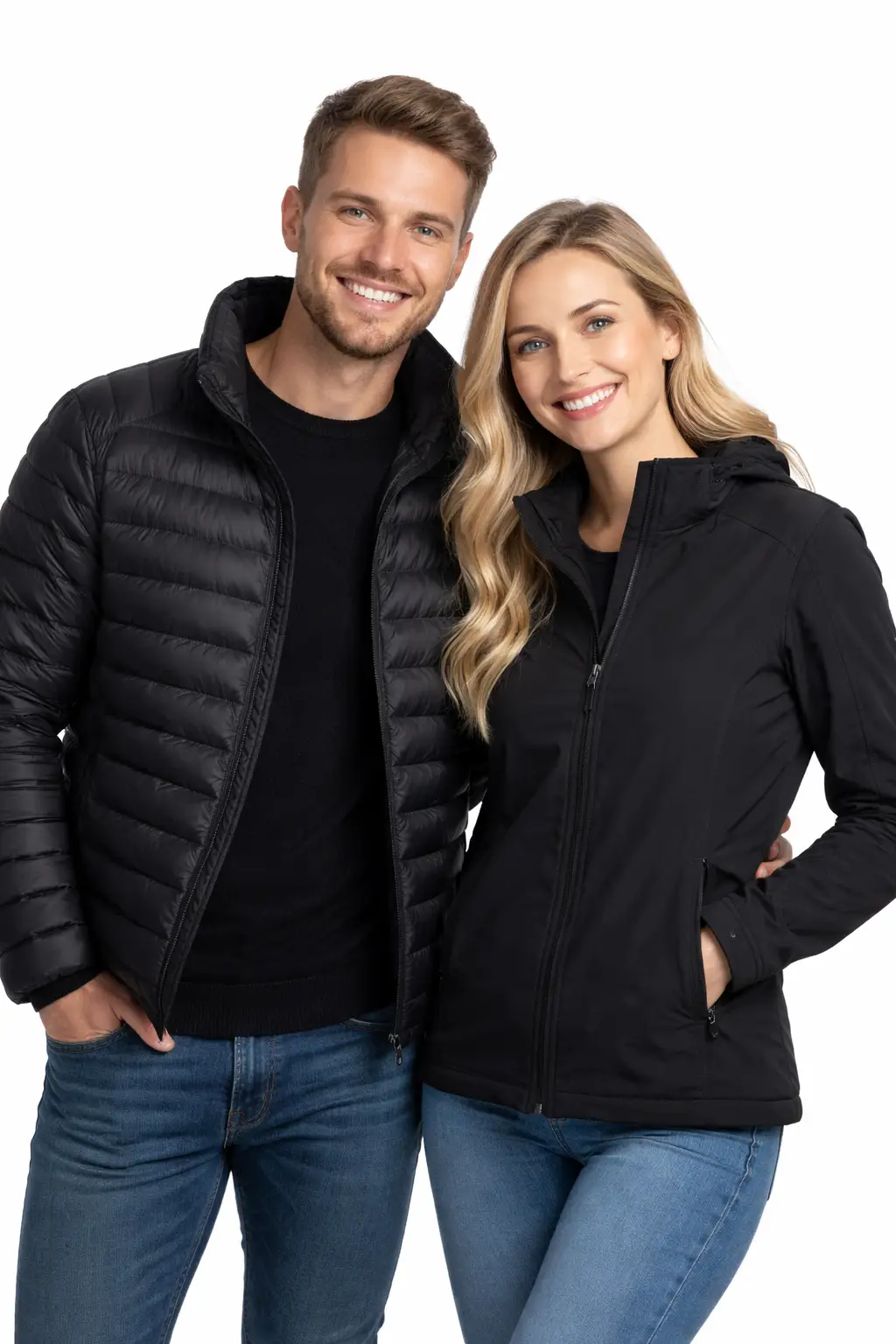 Our soft shell jackets and many puffer jackets are good options if you need water-resistant outerwear. These jackets can help protect you from light rain and windy weather. They are great for everyday use, outdoor staff, and winter wear. We can also help you choose the right option.